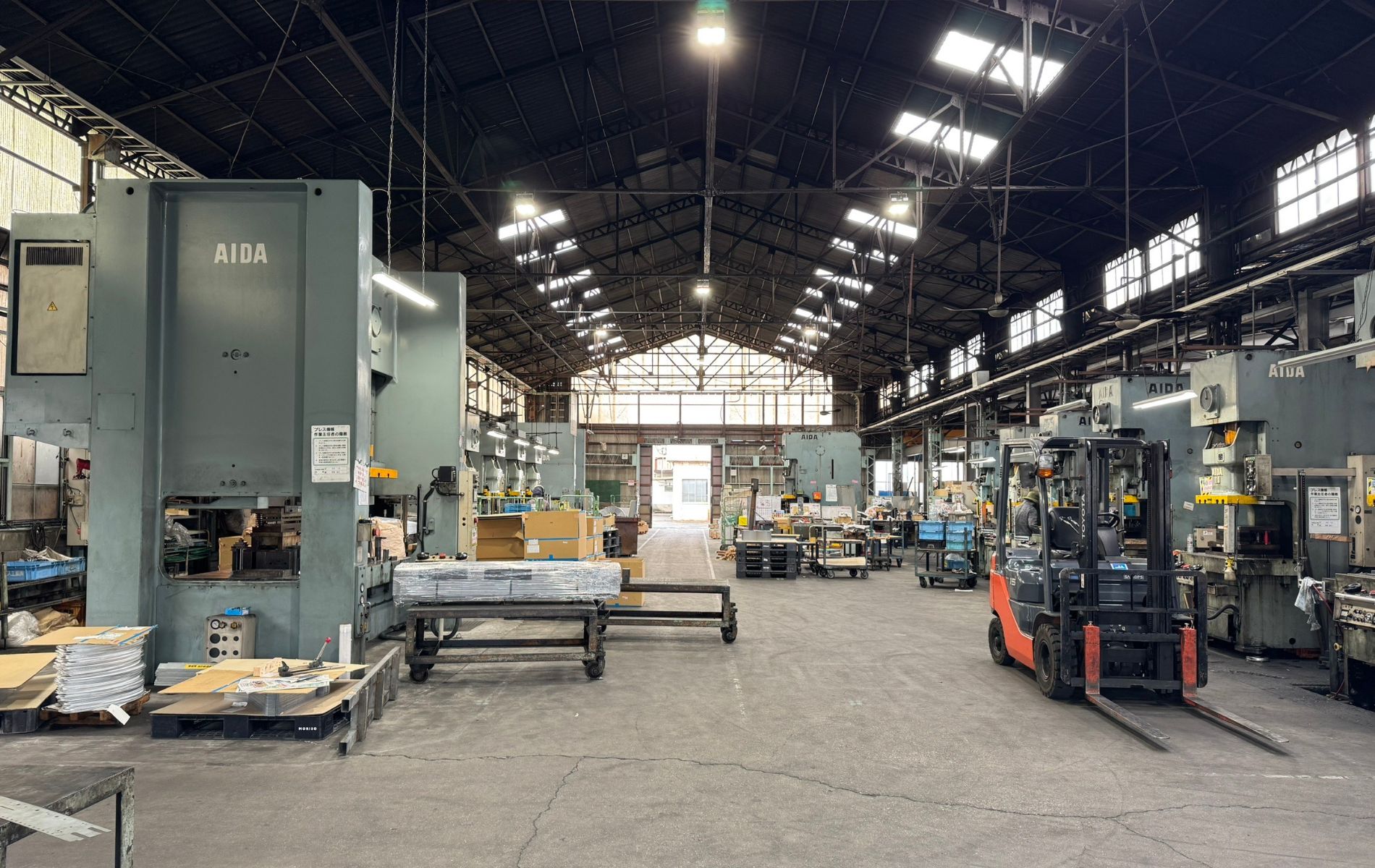 広い敷地に工場、事務所、倉庫が建つ町工場。