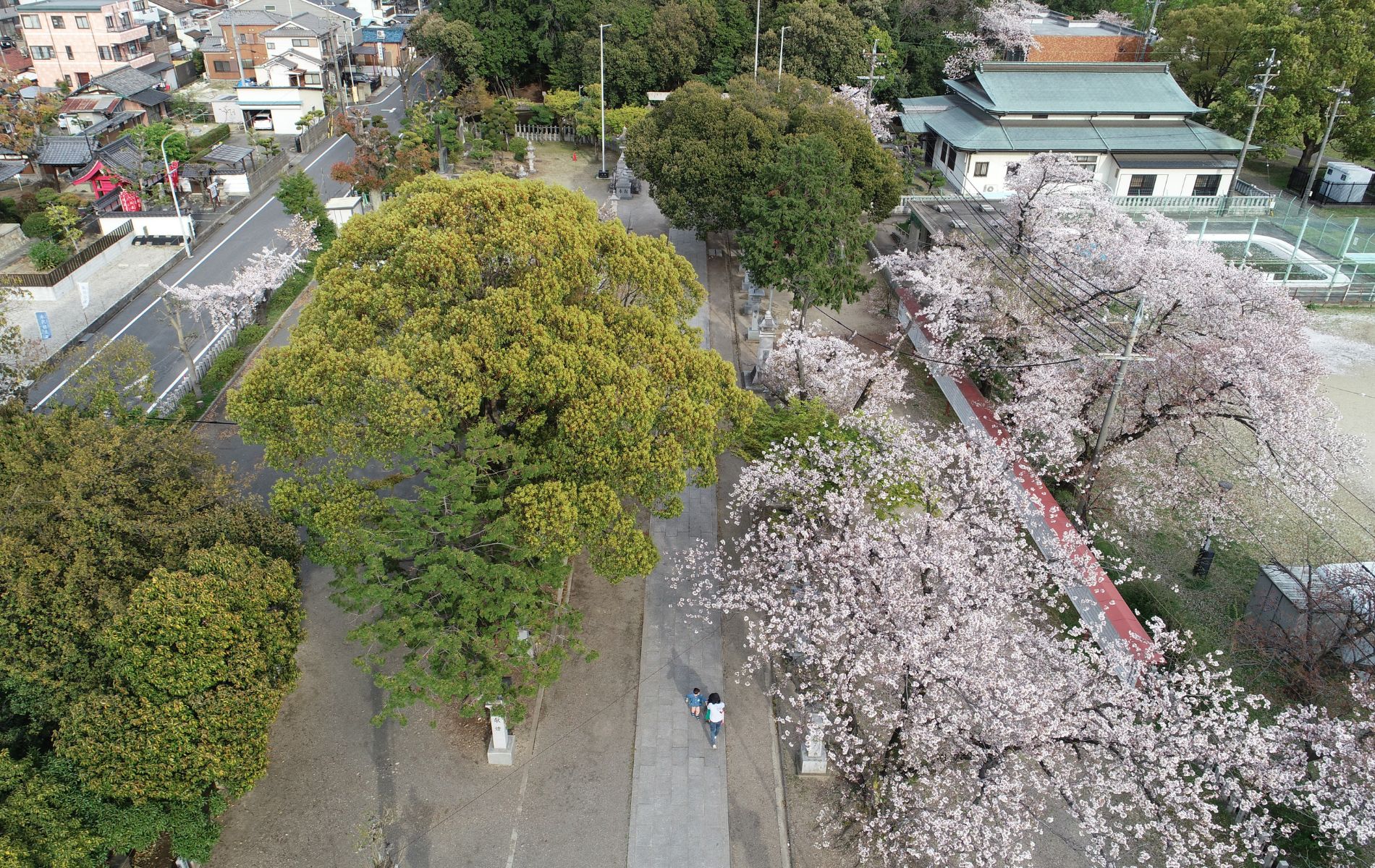 700メートルほどあるまっすぐな参道は、夏祭では夜店が立ち並び、秋祭では神輿などの行列が練り歩きます。